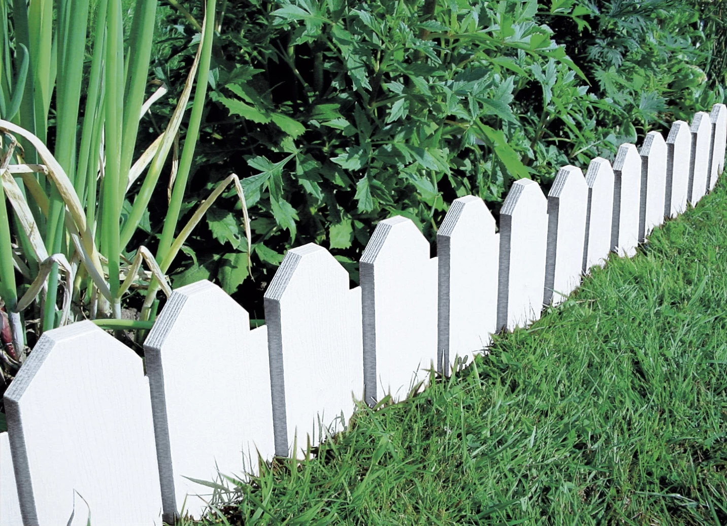 Im Handumdrehen ein kleiner Gartenzaun: 4 Elemente aus flexiblem Kunststoff mit Holzmaserung. Gesamtlänge 240 cm, H 16 cm. Komplett mit Befestigungsstiften.