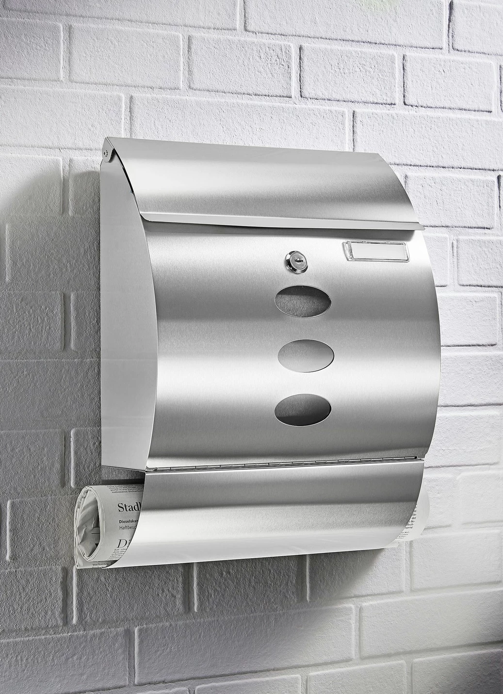 In diesem eleganten Briefkasten aus Edelstahl ist jede Menge Platz für Ihre Post. Mit Klappe zum Schutz vor Feuchtigkeit versehen. Die Zeitung findet im Zeitungsrohr Platz. Dank dem Kunststoff-Sichtfenster sehen Sie auch von außen den Füllstand. Abschließbar.