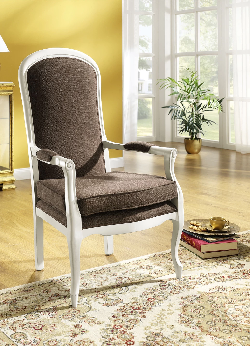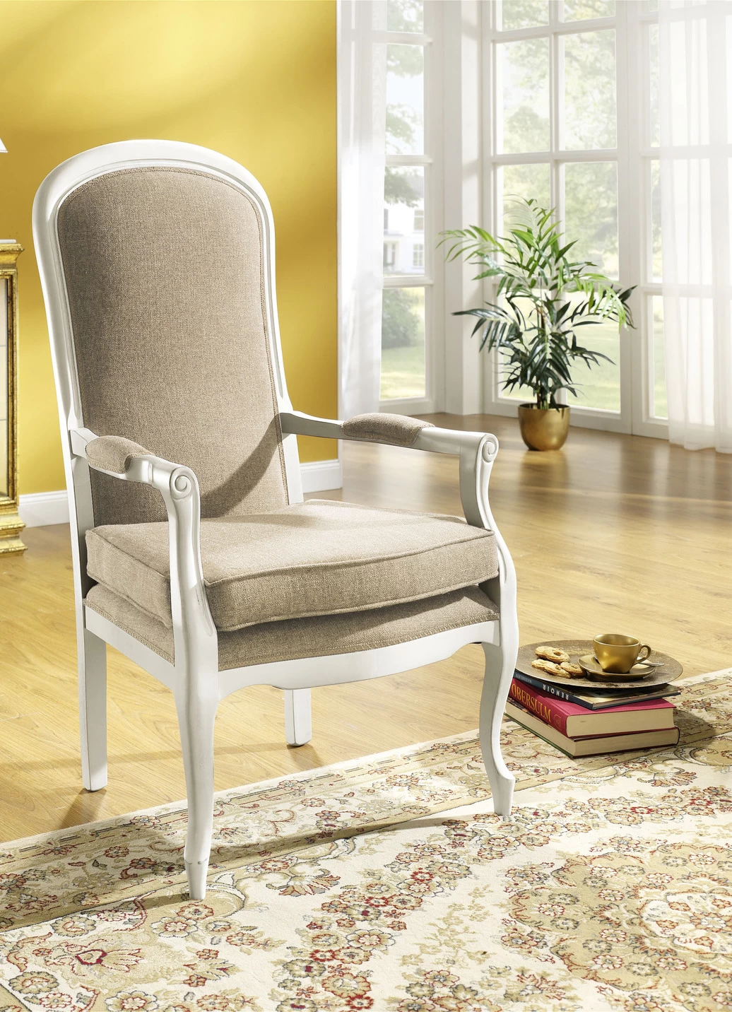Armlehnensessel mit losem Sitzkissen in Weiß-Beige.