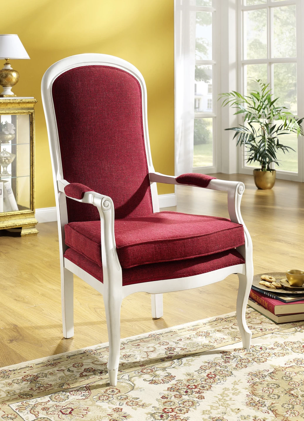 Mit seinem edlen Charme wird Sie dieser bequeme Armlehnensessel mit losem Sitzkissen begeistern! Auf massivem Buchenholz-Grundgestell mit Schaumstoffpolsterung im Sitz und Armlehnen, Nagelzierband sowie tollem Bezug (100% Polyester) in 6 Farben. Der Sitzkissenbezug ist abnehmbar mit Reißverschluss.