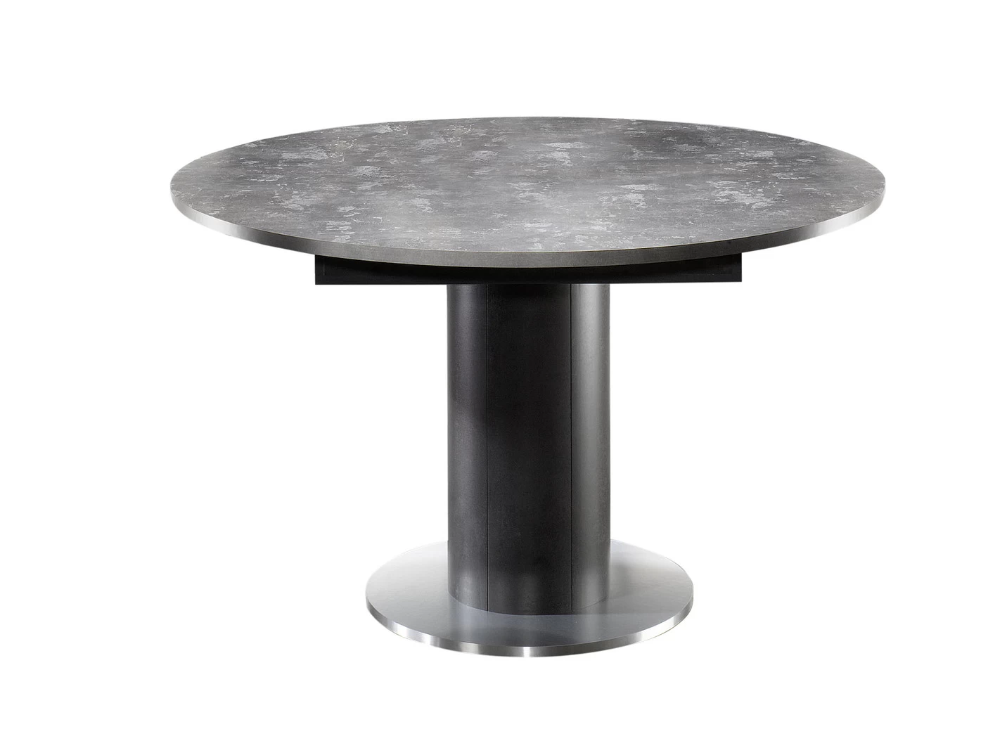 Tisch mit Auszug. Maße: ø 130 cm, Höhe 78 cm. Ausgezogen L170xB130 cm