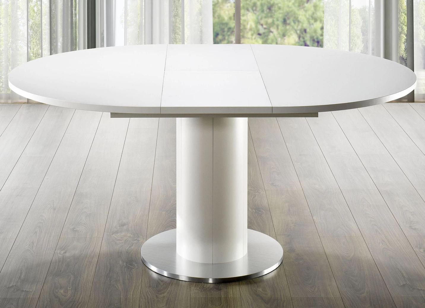 Außergewöhnlicher Tisch mit Auszug in der Ausführung Tisch mit Auszug und in Weiss-Weiss.