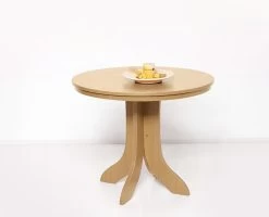 Ausziehbarer Esstisch in der Ausführung Runder Tisch und in Buche.
