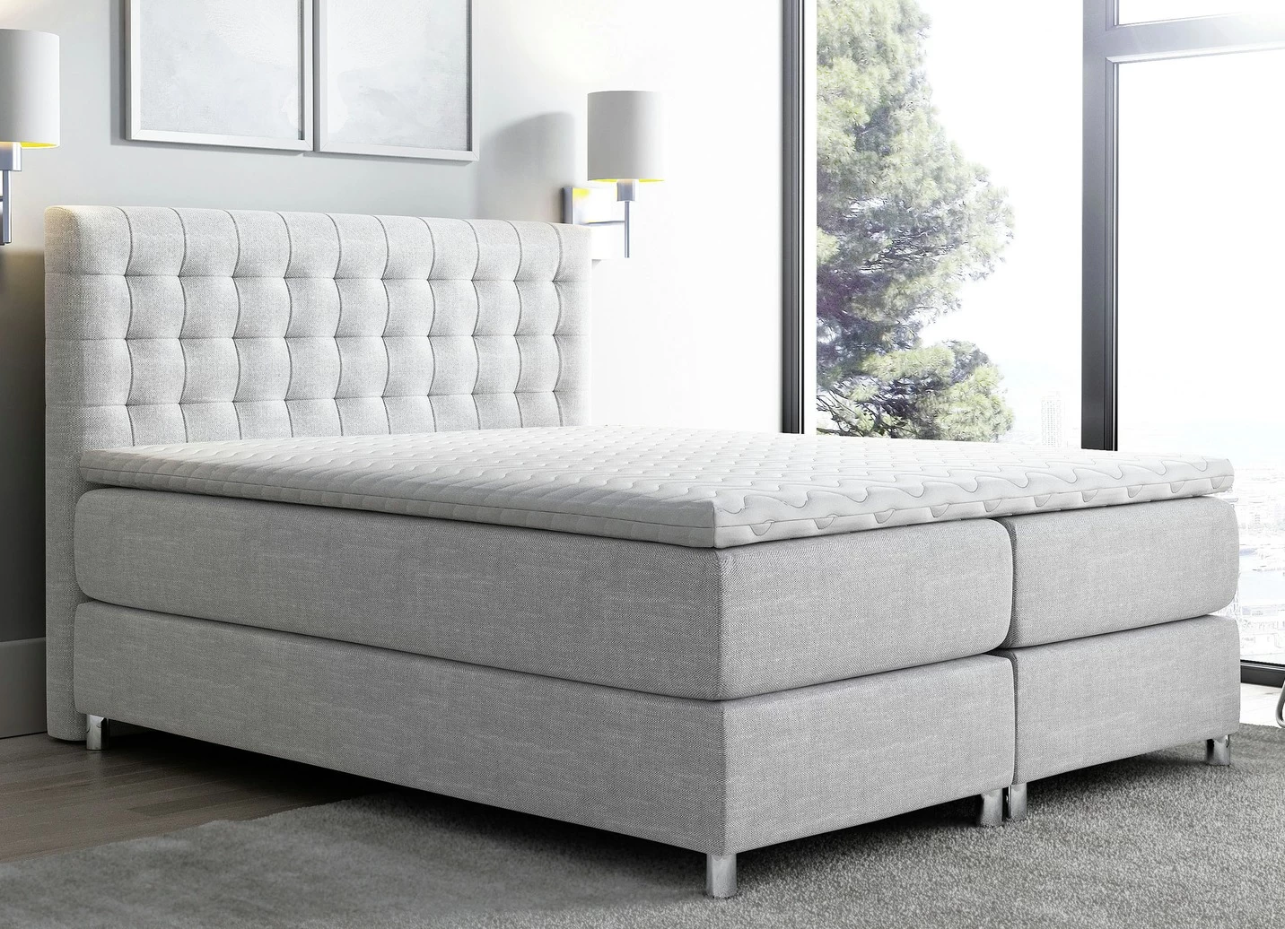 Der 5 cm hohe Kaltschaum-Topper passt sich perfekt dem Körper an und entlastet so die Wirbelsäule. Der Bezug des Toppers ist abnehmbar und bis 60 ºC waschbar. Mit modernem Stoffbezug (100% Polyester). Auf chromfarbenen Kunststofffüßen.