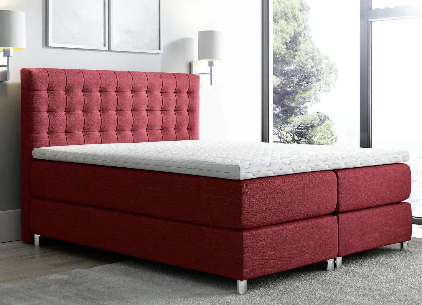 Boxspringbett mit Topper mit einer Liegefläche von 120/200 cm und in Rot.