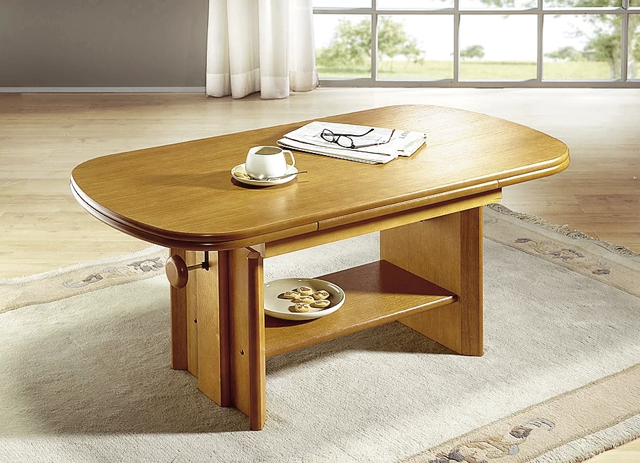 Couchtisch, ausziehbar und höhenverstellbar in Eiche Rustikal.