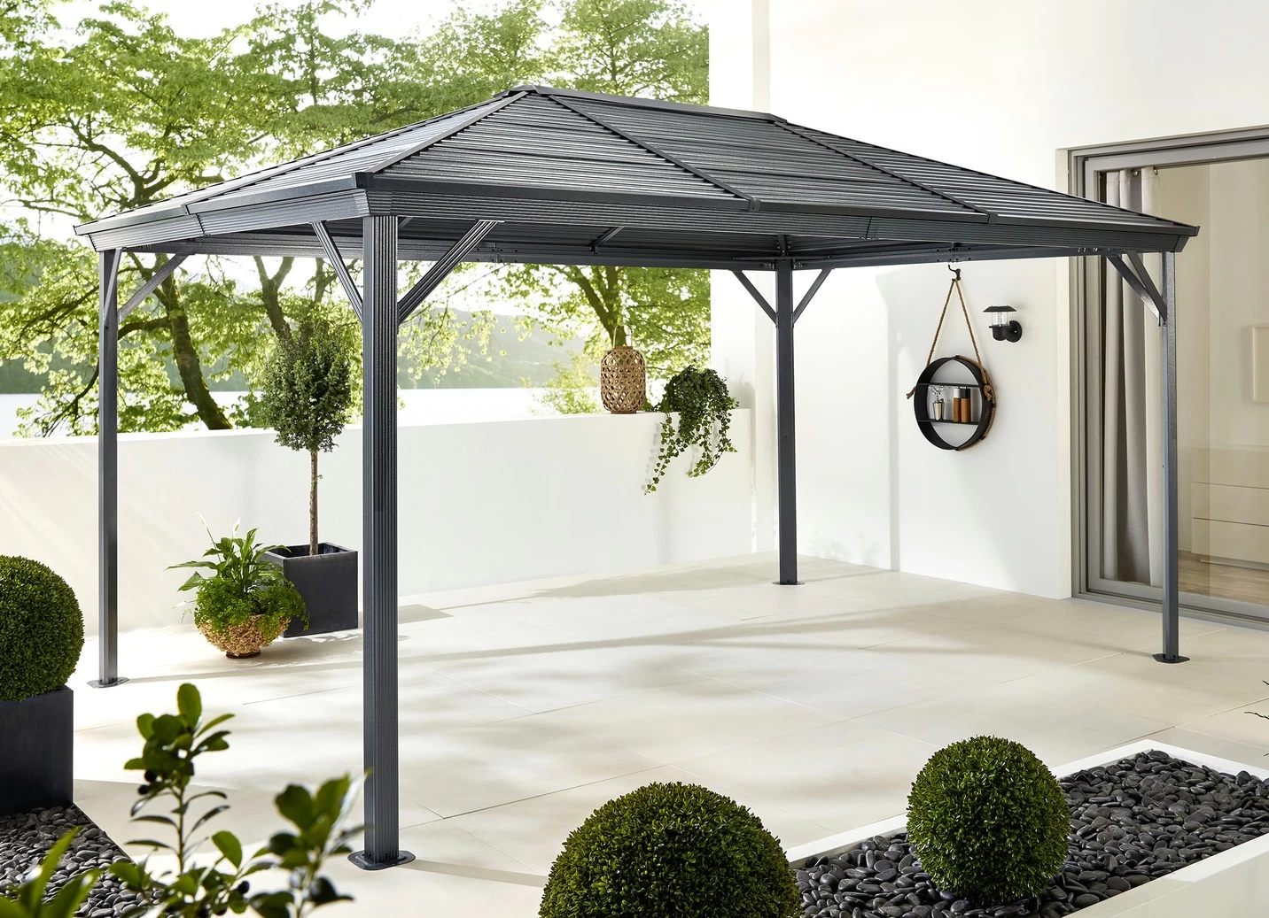 Dauerhaft rostfreier Pavillon Ventura in der Ausführung klein und in Grau.