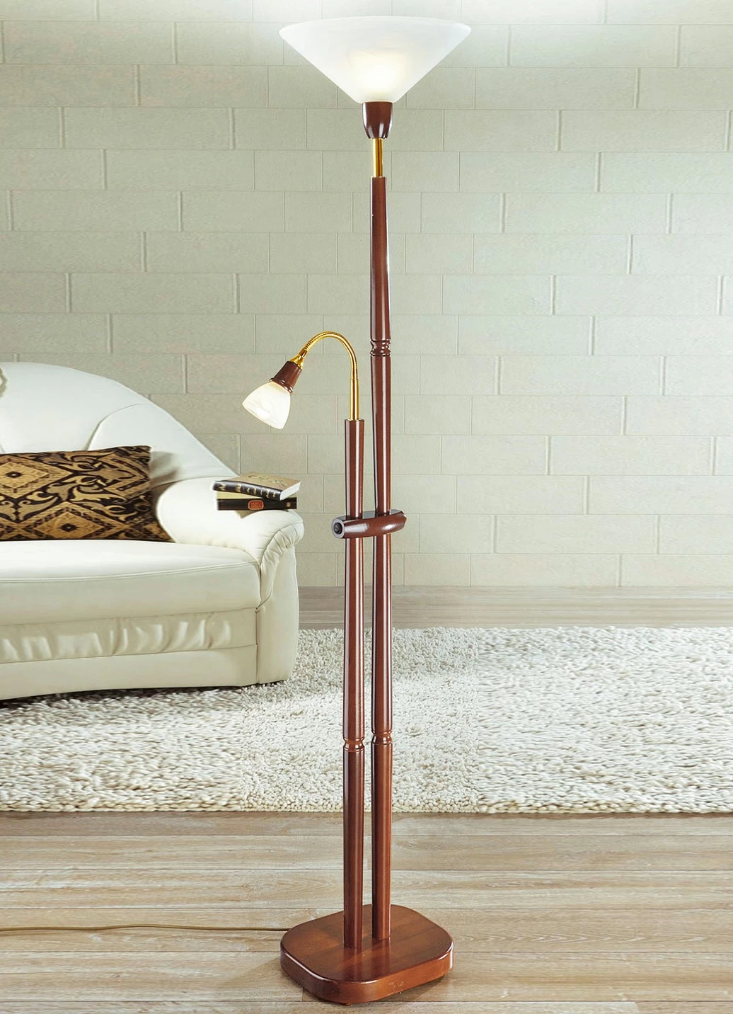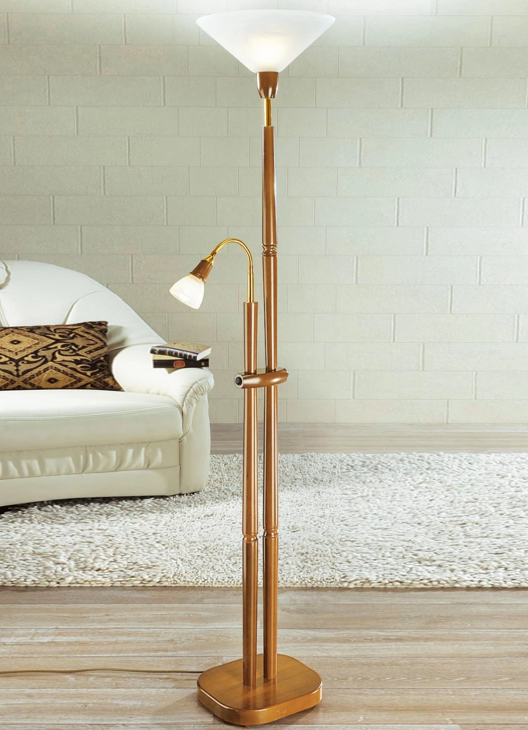 Deckenfluter mit Leselampe in Eiche.