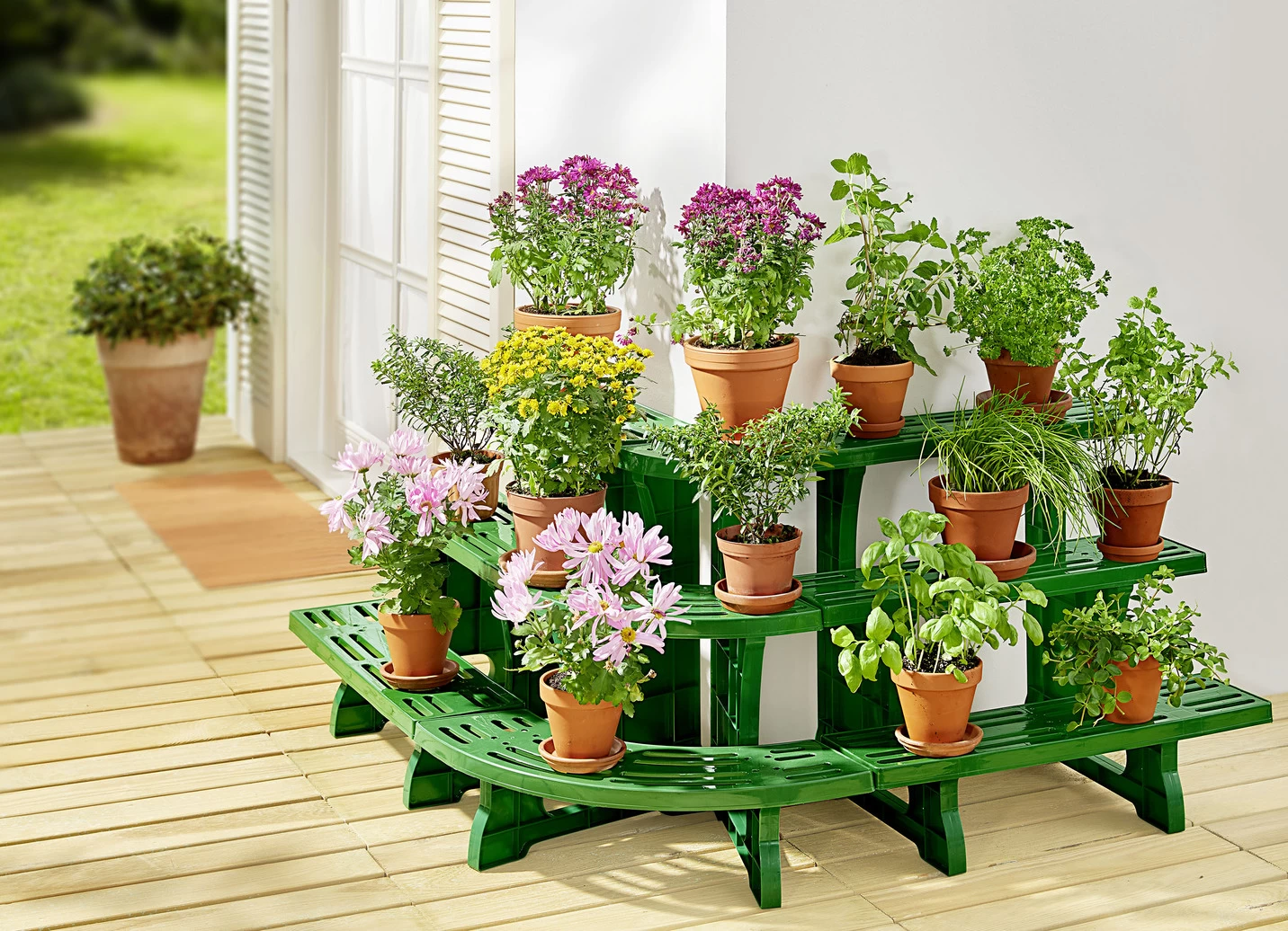 So können Sie Ihre Pflanzen effektvoll in Szene setzen. Ausgesprochen praktisch und dekorativ bieten diese Pflanzentreppen auf 3 Stufen reichlich Platz – die ideale Wahl um Pflanzen und Kräuter zu platzieren. Aus Polypropylen gefertigt. Mit Aufbau-Anleitung.