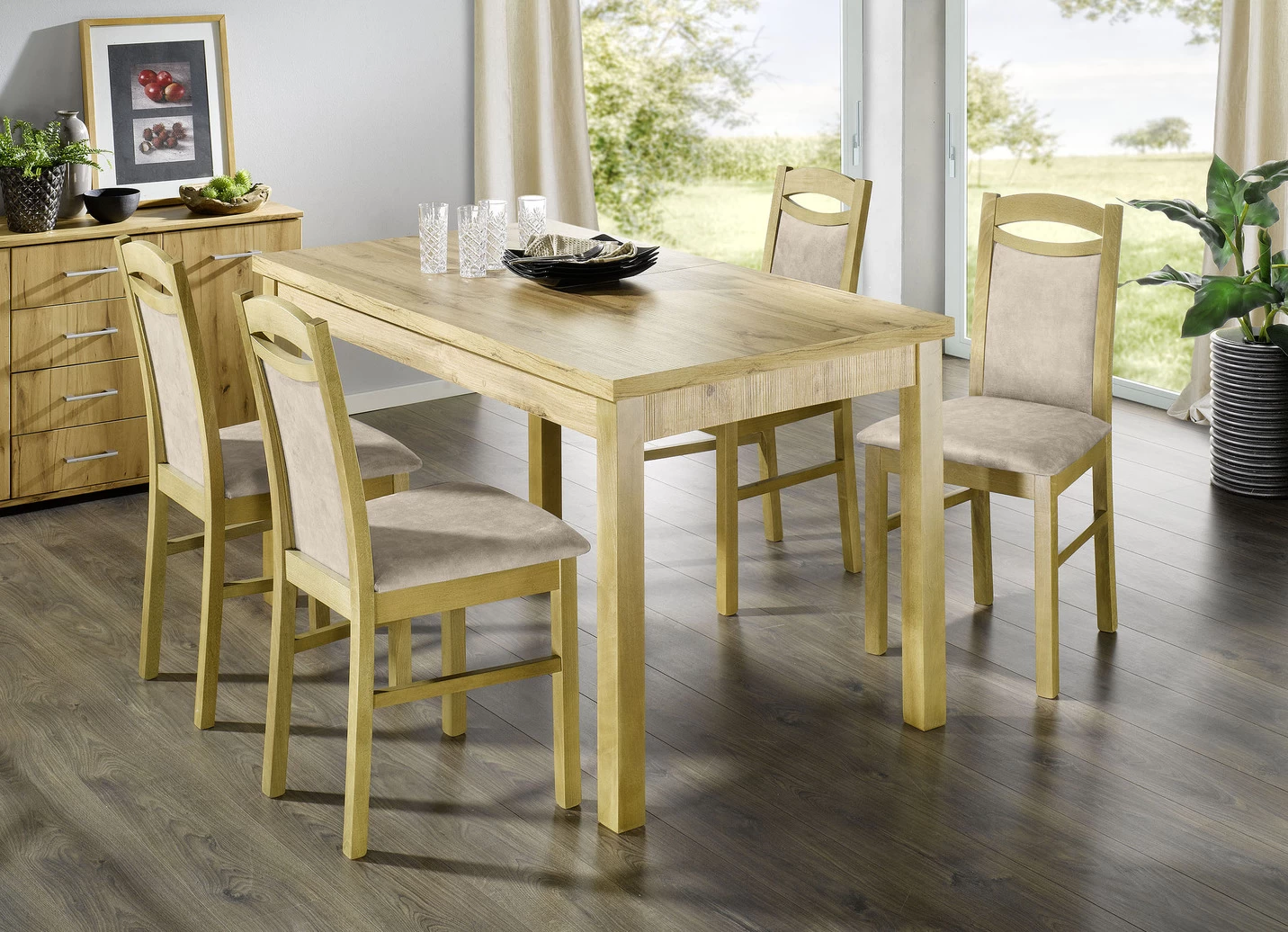 Esszimmermöbel aus Buchenholz in der Ausführung Stühle, 2er-Set und in Eiche-Creme.