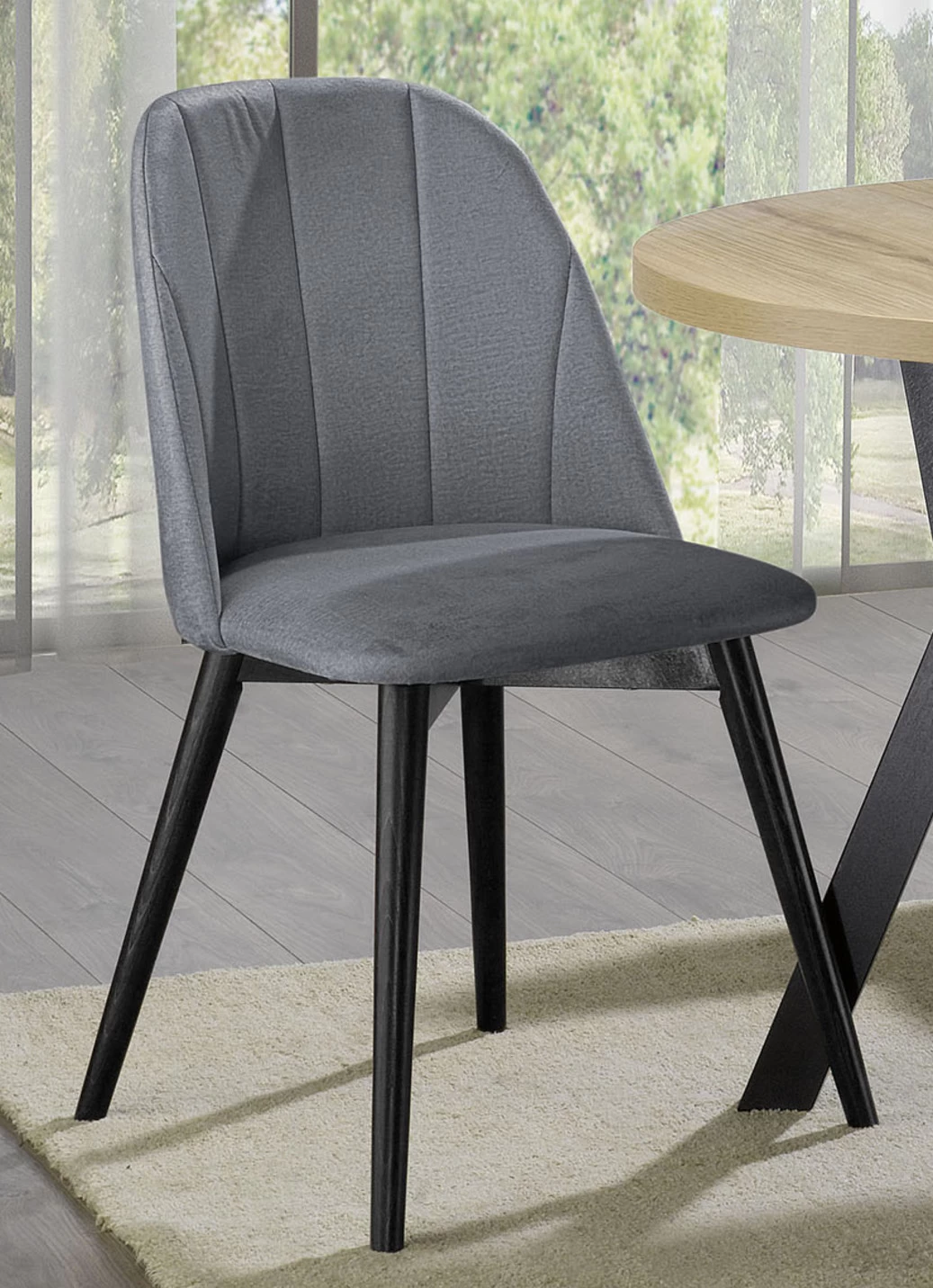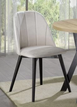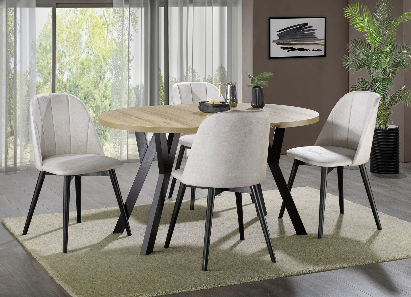 Freuen Sie sich auf neue teilmassive Esszimmermöbel im schicken Design! Gepolsterte Stühle mit Samtbezug aus Mikro-Velour (100% Polyester). Einfach zu reinigen. Mit massiven schwarzen Buchenholzfüßen.