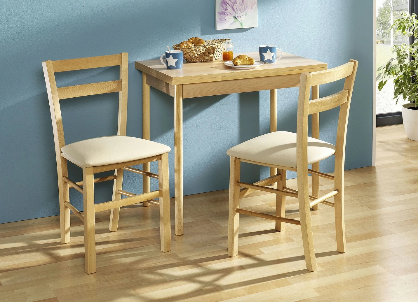 Essgruppe, 3-teilig, bestehend aus: 1 Esstisch, ausziehbar, Maße: B55xH75xL85–135 cm, und 2 Stühlen, Maße: B44xH85xT46 cm, Sitzbreite 44 cm, Sitzhöhe 47 cm, Sitztiefe 40 cm