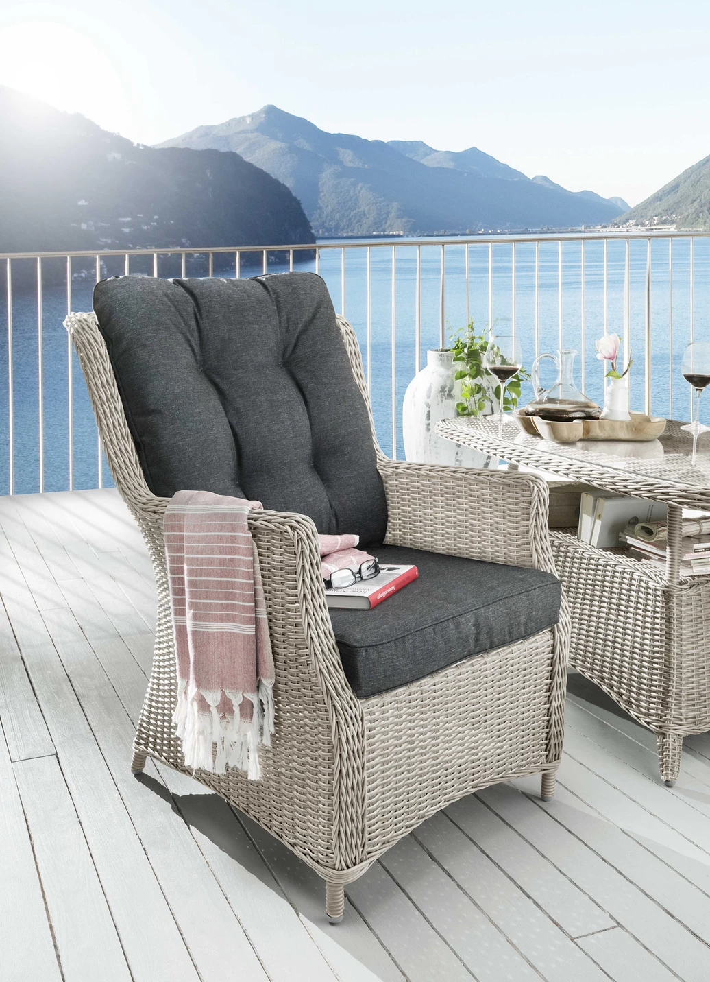 Gartenmöbel Casa in der Ausführung Geflechtsessel Casa und in Altweiss.