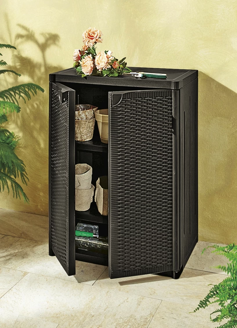 Dieser Geräteschrank schafft Ordnung in Garage, Keller oder Gartenhäuschen! Aus Kunststoff (100% PP). Mit Aufbau-Anleitung. Maße: je B65xT45 cm. Regenbeständig