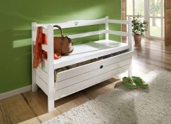 Hochwertige Sitzbank aus teilmassivem Holz in Weiss.