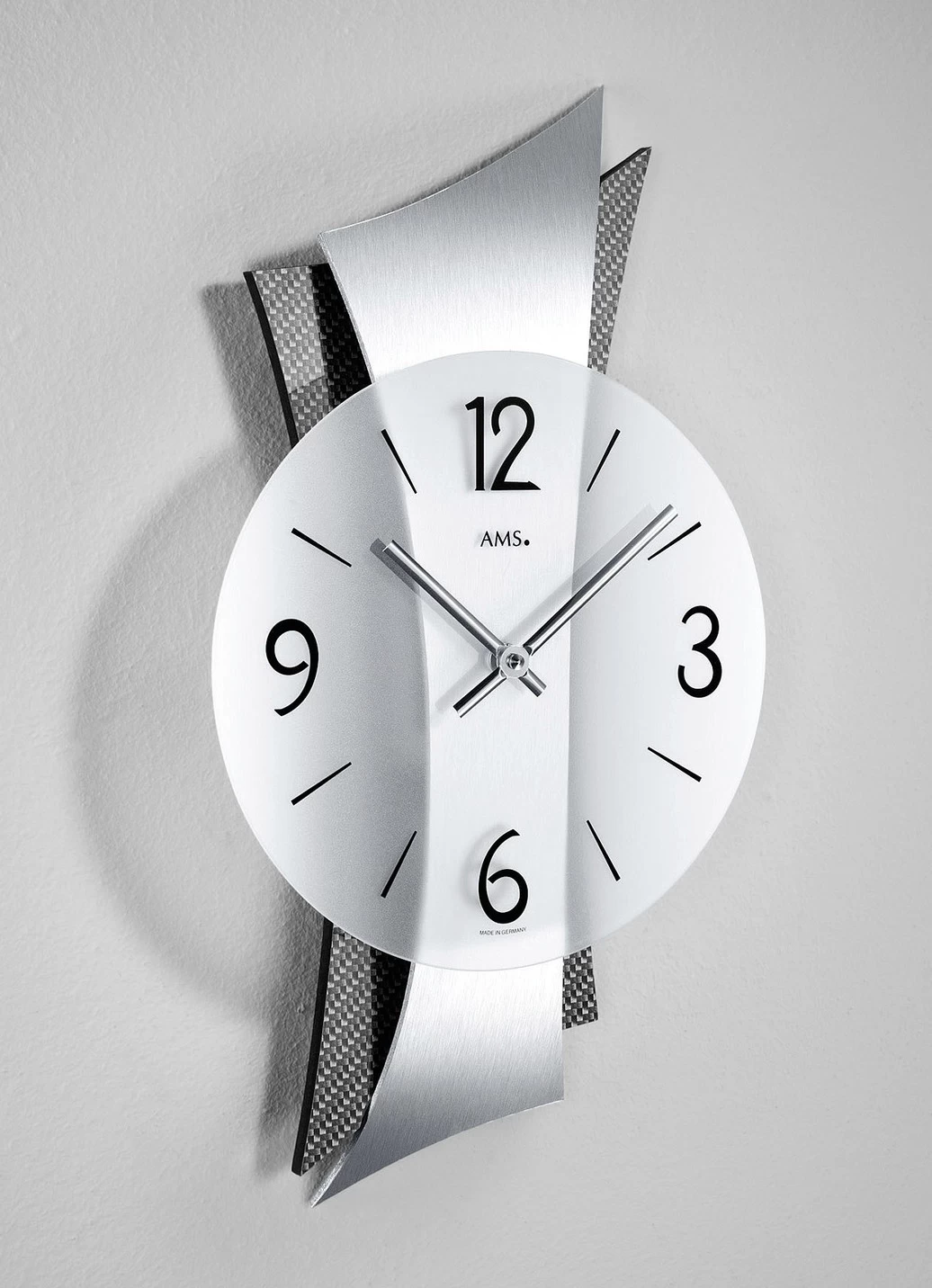 Hochwertige Wanduhr aus Messing mit geschwungener Rückwand in Silber.