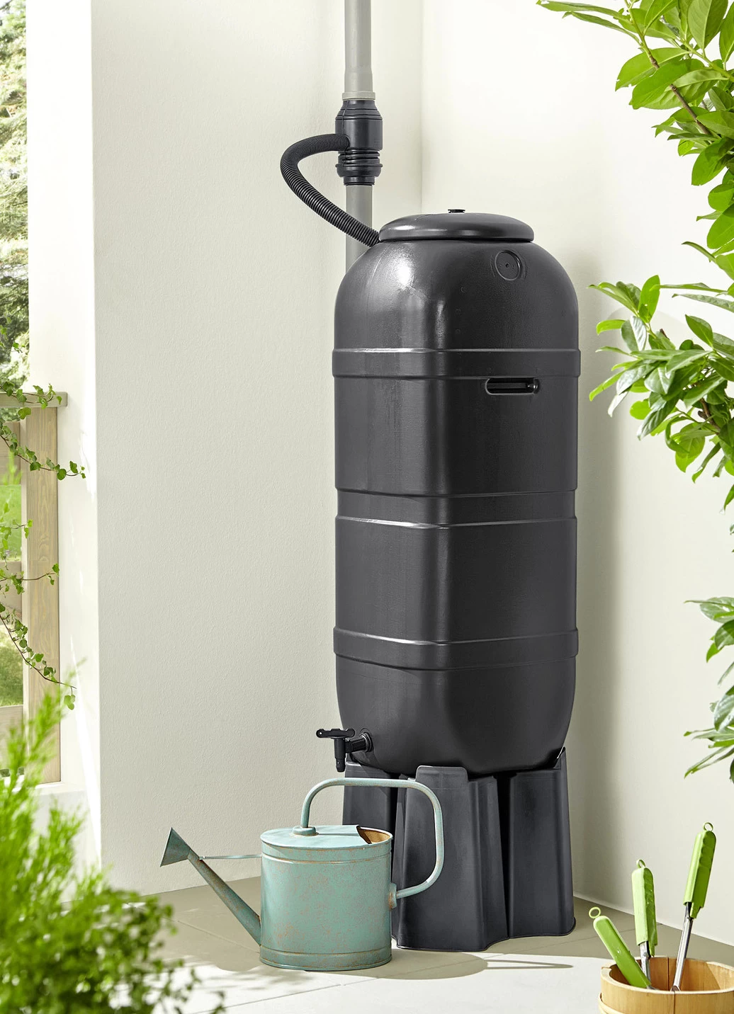 Diese robuste und witterungsbeständige Tonne aus Kunststoff ist die perfekte Lösung für kleine Balkone oder Terrassen. Sockel, Auslaufhahn und Fallrohr-Anschluss (für Fallrohre bis 92 mm) sind im Lieferumfang enthalten.
