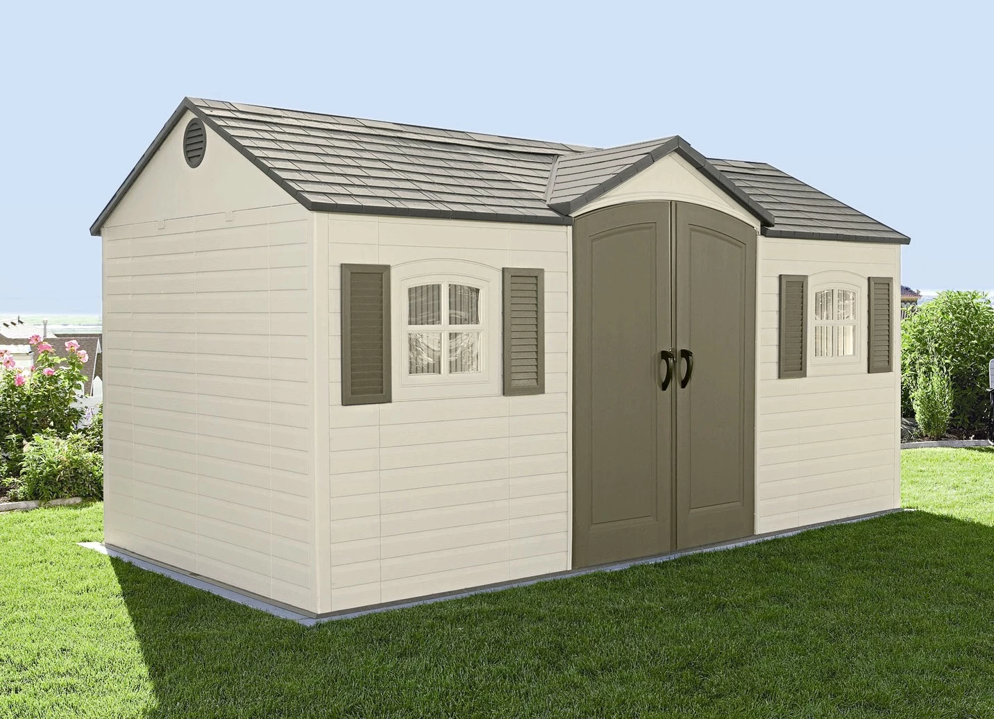 Doppelwandiger Kunststoff (26 mm), UV-Beständigkeit, Dachkonstruktion aus pulverbeschichtetem Hochleistungsstahl sowie mitgelieferter Boden machen dieses Gartenhaus zu einem der stabilstem und langlebigstem seiner Klasse. Das hochwertige, metallverstärkte Polyethylen (HDPE) ist witterungs- und farbbeständig. Kein Streichen, kein Verwittern, kein Rosten; das Haus bedarf keinerlei Pflege und sieht auch noch nach vielen Jahren aus wie am ersten Tag. Ob Fahrräder, Rasenmäher, Mülltonnen, Möbel oder Gartenwerkzeuge – die breiten Eingangstüren garantieren einfachen Zugang. Das Haus wird als Bausatz mit detaillierter Aufbauanleitung und Vorrichtung für Hängeschloss geliefert. Per Steck- und Schraubverbindungen ist es mit 2 Personen in ca. 4 Stunden aufgebaut.