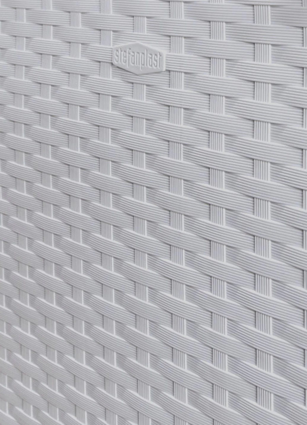 Pflanzkasten in moderner Rattan-Optik in der Ausführung Pflanzkasten, klein, ohne Spalierwand und in Weiss.