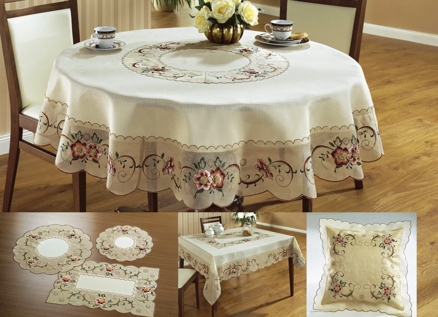 Herrlich romantische Tisch- und Raumdekoration mit wundervoll gestaltetem Rosenmotiv und edler, aufgesetzter Rosenknospe. Die pflegeleichte Qualität: 100% Polyester. Waschbar bis 40°C