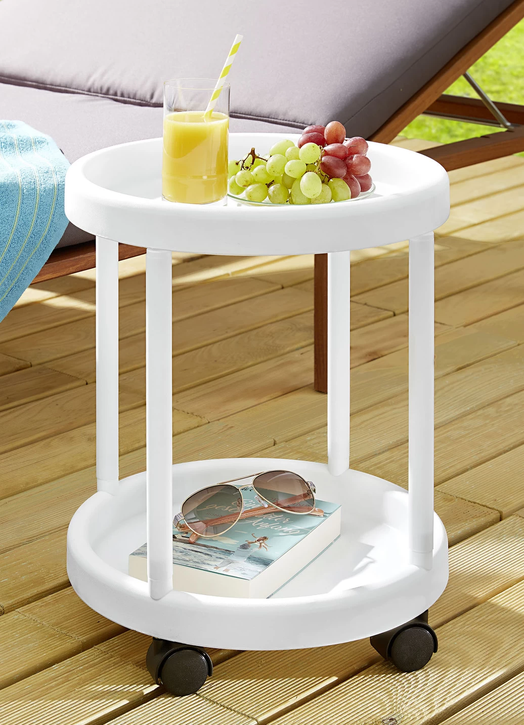 Holen Sie sich Ihren persönlichen Butler ins Haus. Sehr beweglich und unheimlich flexibel stellt dieser Servierwagen aus Kunststoff den idealen Helfer für Sie dar. Ob als Beistelltisch, Dinett oder Teewagen – er leistet stets vielfältige Dienste für Sie. Auf 4 Rollen und mit 2 Ablageflächen. Mit Aufbau-Anleitung. Maße ø 33 cm, Höhe 43 cm.