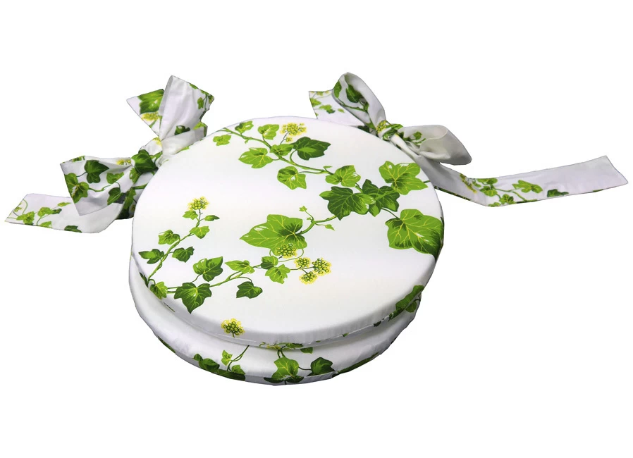 Sitzkissen, 2er-Set. Formgenau gearbeitet, komfortabel mit Schaumstoff gepolstert und bezogen mit einem pflegeleichten Stoff mit Efeu-Dessin aus reiner Baumwolle. Mit Schleifenbändern.