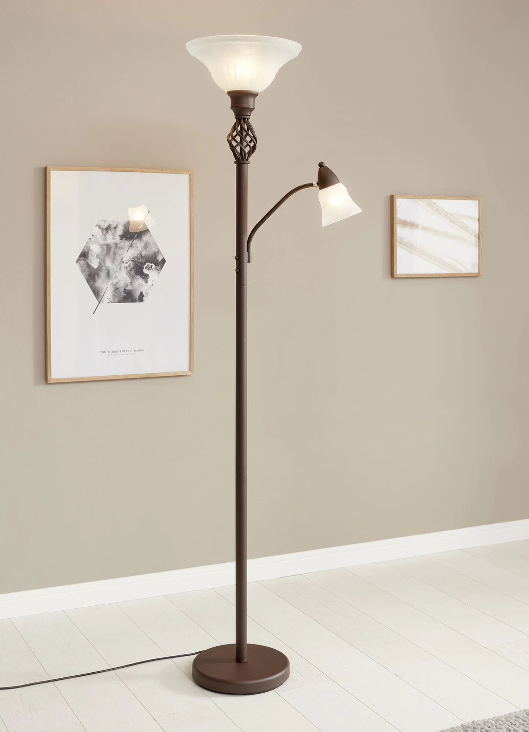 Stehleuchte aus Metall mit Glasschirmen