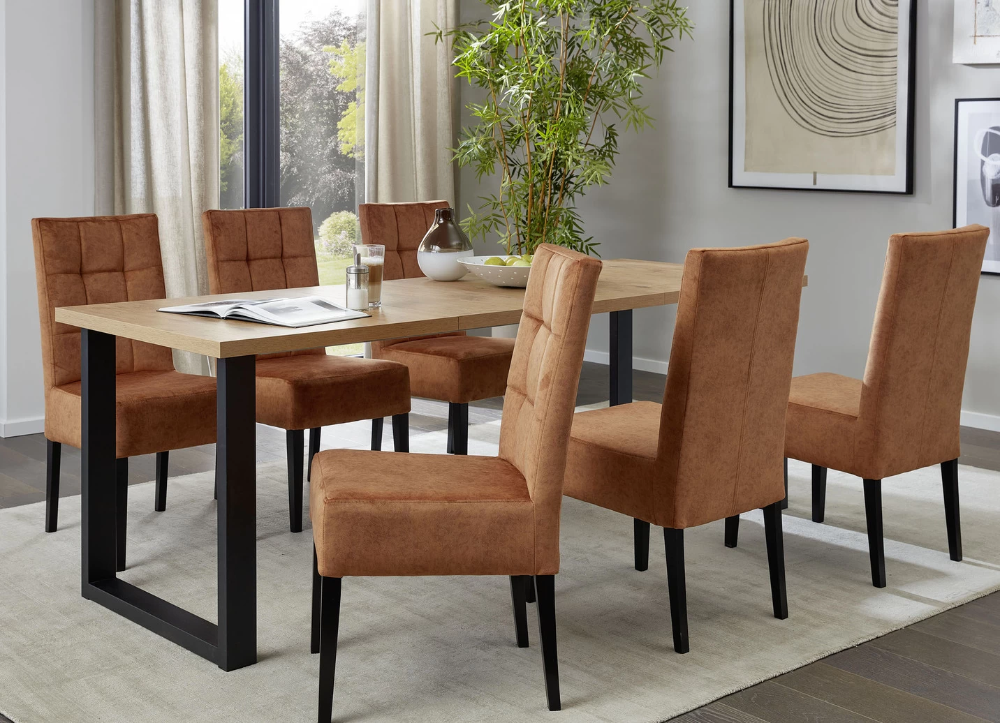 Nehmen Sie Platz und genießen Sie Ihren neuen Essbereich! Dieser stilsichere Tisch mit Auszug steht für Komfort und Modernität.
