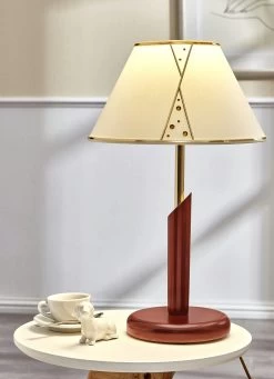 Stilvolle Tischleuchte aus altmessingfarbenem Metall in Altmessing.