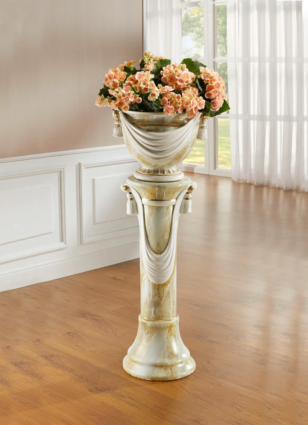 Von Hand gefertigte Säule mit Übertopf in Rose.