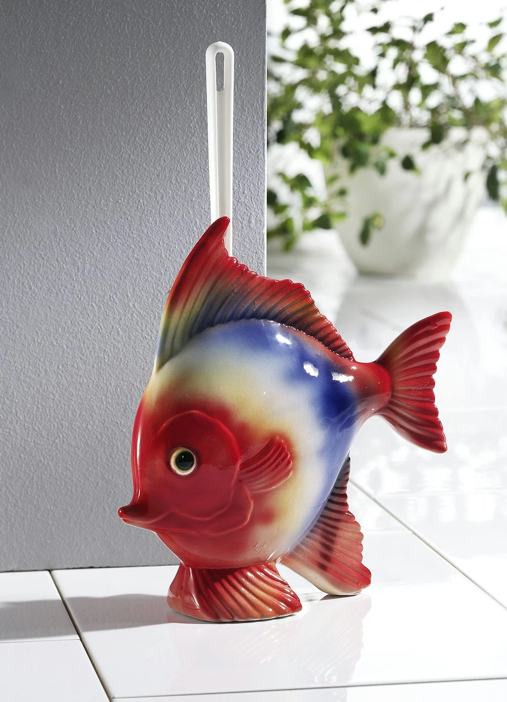 Diese schöne und raffinierte WC-Garnitur in Form eines Fisches wurde von Kunsthandwerkern aus hochwertiger Keramik liebevoll gefertigt und sorgfältig bemalt. Die Lieferung erfolgt mit Toilettenbürste. Maße: B27xH29,5xT10 cm
