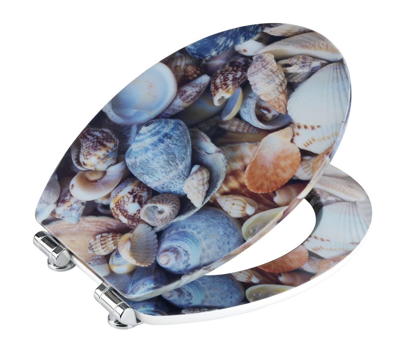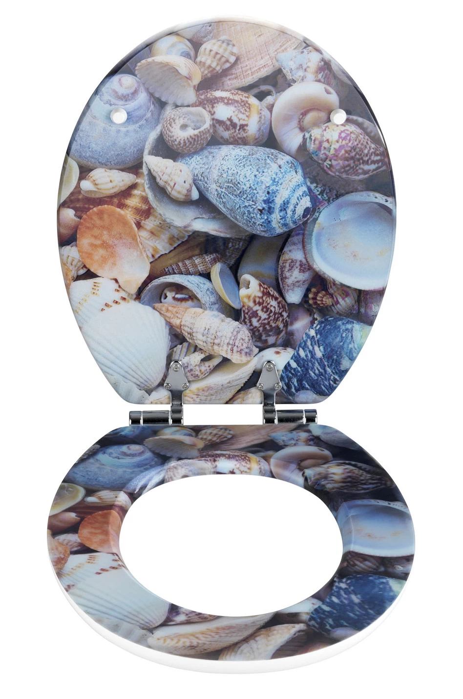 Dieser WC-Sitz mit 3D-Dekor bringt Strandfeeling ins Bad oder Gäste-WC. Nie mehr Deckelknallen dank Easy-Close-Absenkautomatik. Einfache Reinigung, da der komplette Sitz einfach wieder abnehm- und aufsteckbar ist. Die Befestigung des Sitzes ist flexibel einstellbar, er passt somit auf alle handelsüblichen WCs. Aus MDF gefertigt. Maße: B38xT44,5 cm.