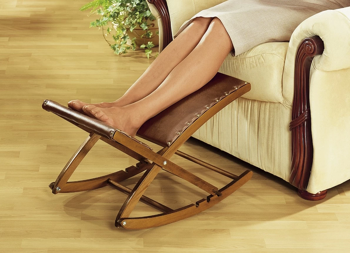 Eine Fußschaukel ist eine Art Hocker, um die Beine hochzulegen. Sie ist ideal, um bei einem guten Buch oder Film zu entspannen. Ihre Beine sind durch die Ablage entlastet. Muskeln, Bänder und Sehnen ruhen sich aus.